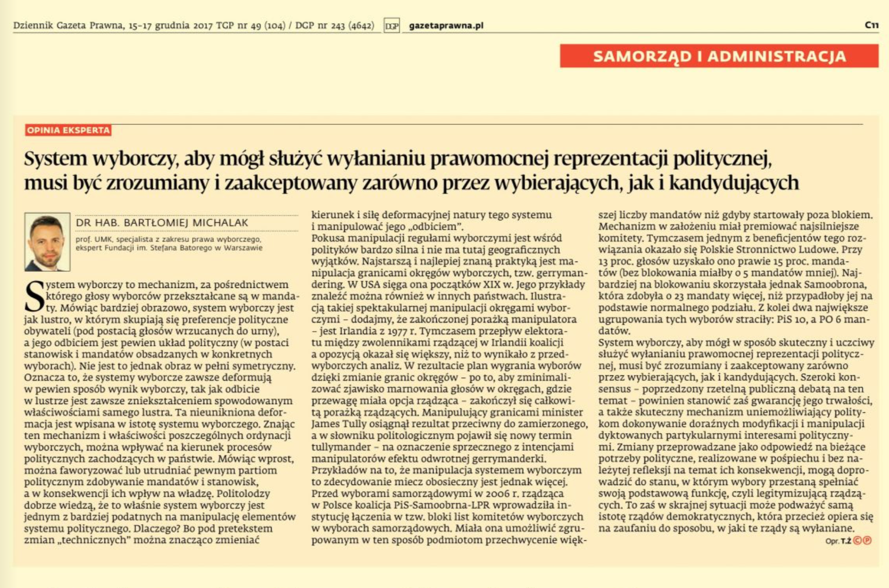 - System wyborczy musi być zrozumiały i akceptowany..., "Dziennik Gazeta Prawna" (15.12.2017)