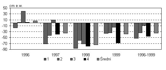 Średni bilans masy lodowca Waldemara (NW Spitsbergen) w latach 1996-2002 wyniósł -49,3 cm e.w.. Pozytywna wartość wystąpiła jedynie w roku bilansowym 1996 i wyniosła +2,2 cm e.w.. Była ona spowodowana przede wszystkim dużą zimową akumulacją śniegu, która była najwyższa w całym analizowanym okresie. Również w roku 2002 akumulacja śniegu była duża, ale wyższa od przeciętnej ablacja letnia, spowodowała, że bilans masy w tym roku był wyraźnie ujemny (-51,4 cm e.w.). W pozostałych latach decydującą rolę w ukształtowaniu wielkości bilansu masy odegrały warunki pogodowe panujące w okresie letnim W roku 2002 wartość bilansu masy była najbardziej zbliżona do średniej wieloletniej. Największe różnice wartości bilansu masy od średniej wieloletniej stwierdzono w roku: 1996, 1998 i 2001. Były to lata o odmiennych warunkach pogodowych, charakteryzujące się dużą zimową akumulacją śniegu lub podwyższoną średnią temperaturą powietrza w okresie letnim.