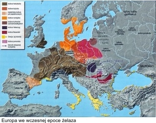 że kultura łużycka stanowiła lokalną odmianę rozległego na obszarze Europy kręgu pół popielnicowych. Gospodarka społeczności „łużyckich” lokalnie zróżnicowana w zależności od terenu, gł. jednak uprawa ziemi (kilka gatunków pszenic, jęczmień, proso, żyto, rośliny strączkowe i oleiste, len) i hodowla (bydło, trzoda chlewna, owce, kozy, konie, psy); wyróżnia się odlewnictwo brązu i początki obróbki żelaza, a także garncarstwo, tkactwo, obróbka poroża, kości i rogu, ciesielstwo; rozwinięta wymiana (lokalna i ponadlokalna) różnorodnych dóbr (także o cechach wymiany handlowej, np. bursztynem) i komunikacja (wozy dwu- i czterokołowe, łodzie). Osiedla b. zróżnicowane: nieduże osady sezonowe, rozległe, długotrwałe osady otwarte oraz, na terenach środk. i zach. występowania kultury łużyckiej, grody (Biskupin, Drezno-Coschütz, Wicina), czasami o zwartej, planowej zabudowie (Biskupin). Zmarłych najczęściej palono i grzebano w popielnicach, na płaskich, rozległych cmentarzyskach; miejscami występują inne formy ciałopalnego pochówku, w tym także kurhany, oraz obrządek szkieletowy; są znane miejsca dokonywania bliżej nam nieznanych praktyk obrzędowo-rytualnych (często nazywanych w literaturze ośrodkami kultu) np. góra Ślęża. Naczynia gliniane, ręcznie lepione, występują masowo i w b. wielu formach: w najstarszej fazie naczynia z wytłaczanymi od wewnątrz guzami, później dwustożkowe, ostro profilowane, a we wczesnej epoce żelaza naczynia wazowate i amfory o wydętym brzuścu, zwężającej się szyjce i rozchylonej krawędzi wylewu; zdobione najczęściej rytami geom., we wczesnej epoce żelaza malowane i inkrustowane; występują też ryty zoo- i antropomorficzne, a nawet sceny narracyjne; zmieniające się w czasie przedmioty metal. (z brązu, później żelaza) są reprezentowane przez wytwórczość miejscową oraz importy: narzędzia (siekiery, sierpy, noże), broń (miecze, sztylety, groty oszczepów i strzał), ozdoby (naszyjniki, bransolety, kolczyki). Sądzi się że społeczności kultury łużyckiej mogły upaść m.in. na skutek najazdów zewnętrznych (np.scytyjskich) lub też ogólnych przeobrażeń oblicza kulturowego tej części Europy, w jakimś zakresie spowodowanych przemianami klimatycznymi (przełom okresów subborealnegio i subatlantyckiego). Dawniej sądzono, że do upadku kultury łużyckiej miała przyczynić się ekspansja ludności kultury pomorskiej (niegdyś nazywanej też wejherowsko-krotoszyńską); etnicznie była prawdopodobnie niejednolita, W starszej literaturze przedmiotu dość jednoznacznie interpretowano część wschodnią kultury łużyckiej jako mogącą być łączoną z ludnością prasłowiańską. Obecnie tego rodzaju interpretacje dotyczące etnicznych przyporządkowań ludności „łużyckiej” są zdecydowanie bardziej wstrzemięźliwe a dalsze w tym kierunku poszukiwania bywają wspierane (ze względu na słabość w tym względzie wymowy źródeł archeologicznych) dociekaniami lingwistycznymi i antropologicznymi Nazwa k. łużyckiej pochodzi od Łużyc — miejsca znalezienia pierwszych cmentarzysk tej kultury.źródło: Encyklopedia PWN, z poprawkami J. Gackowskiego grafika: Wielka Historia Polski, tom 1 Najdawniejsze Dzieje Ziem Polskich, J.K. Kozłowski, P. Kaczanowski |