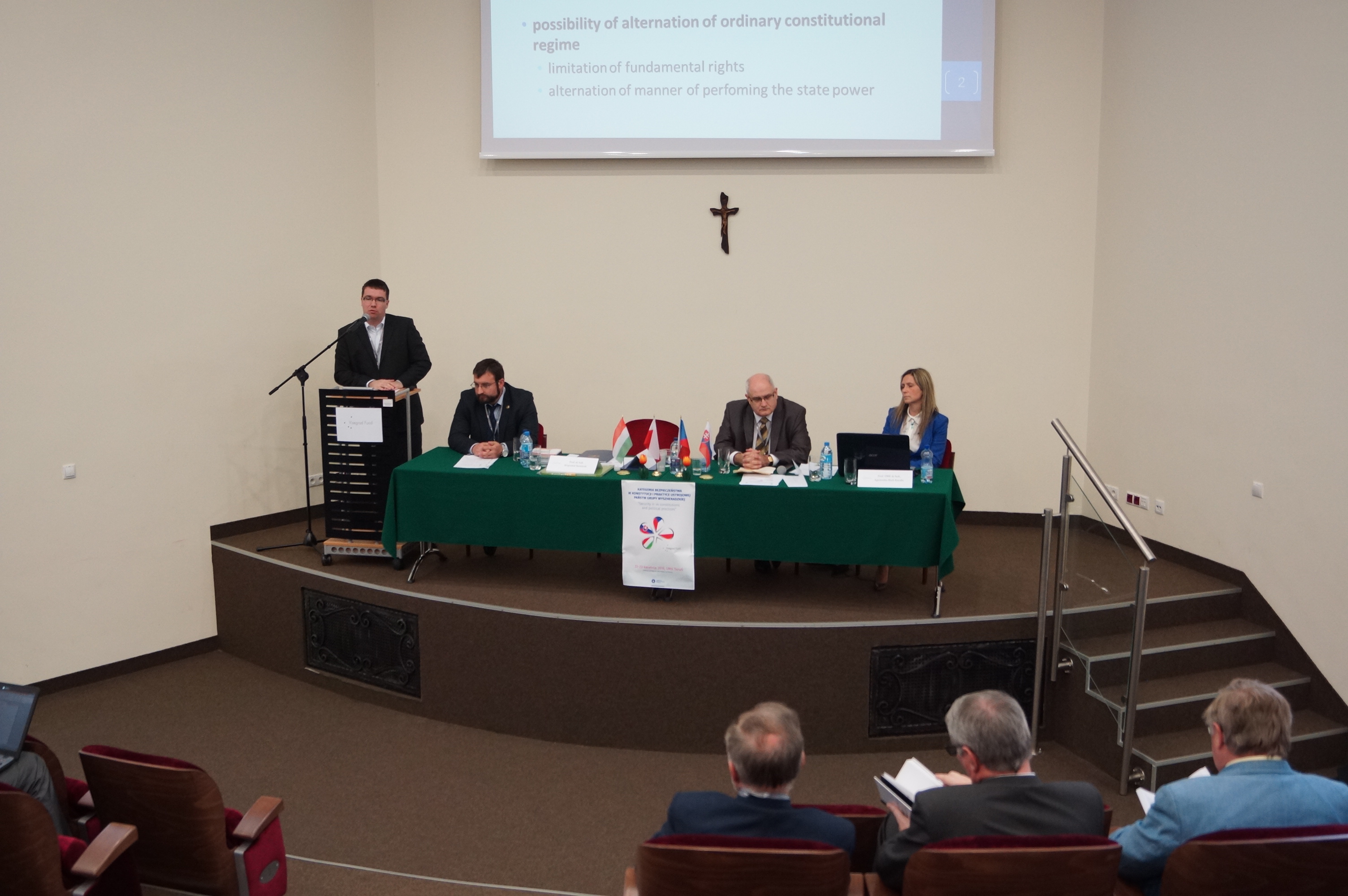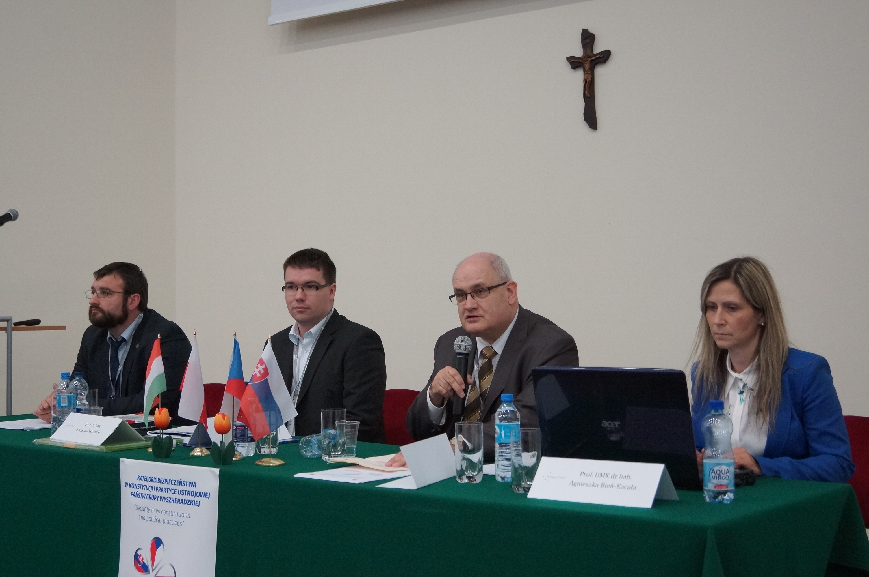 W dniach 22-23 kwietnia na Uniwersytecie Mikołaja Kopernika w Toruniu odbyła się międzynarodowa konferencja naukowa „Security in V4 constitutions and political practices”, której organizatorem była Katedra Prawa Konstytucyjnego. Przedsięwzięcie stanowiło podsumowanie blisko rocznych badań naukowych nad zagadnieniem kategorii bezpieczeństwa w świetle regulacji konstytucyjnych i praktyki ustrojowej państw Grupy Wyszehradzkiej. Głównym celem projektu badawczego, współfinansowanego ze środków Międzynarodowego Funduszu Wyszehradzkiego w ramach umowy Standard Grant No 2151044, było stworzenie jednolitego i kompleksowego podejścia w zakresie rozwiązywania kryzysów w obszarze V4 oraz ustalenie kierunków reform regulacji prawnych w obszarze bezpieczeństwa. UMK jest koordynatorem przedsięwzięcia. Projektem kierowała p. dr hab. A. Bień-Kacała, prof. UMK. Do udziału w jego realizacji, obok przedstawicieli czołowych polskich ośrodków naukowych, zaproszeni zostali także uczeni z Czech (Uniwersytet Karola w Pradze, Uniwersytet Palackého w Ołomuńcu, Uniwersytet Metropolitarny w Pradze), Słowacji (Uniwersytet Komenského w Bratysławie) oraz Węgier (Pécsi Tudományegyetem i Pázmány Péter Katolikus Egyetem w Budapeszcie).