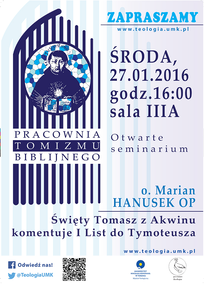 Temat seminarium: "Święty Tomasz komentuje I List do Tymoteusza