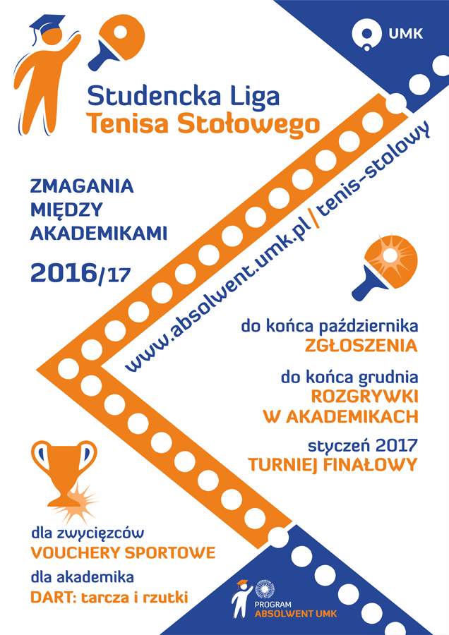Studencka Liga Tenisa Stołowego organizowana jest przez Program Absolwent UMK przy wsparciu Uniwersyteckiego Centrum Sportowego UMK.