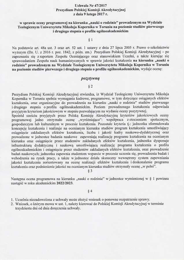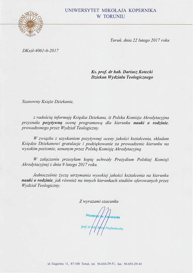 Pozytywna ocena programowa PKA dla Nauk o Rodzinie