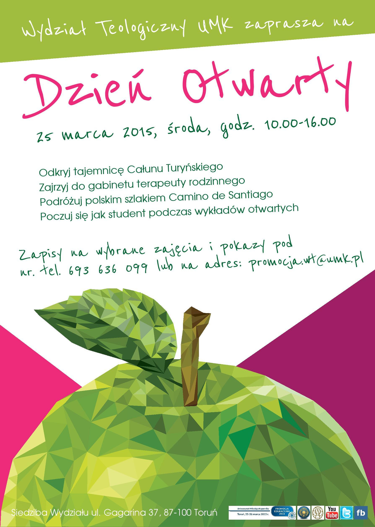 z nieskrywaną radością zapraszamy do udziału w Dniu Otwartym na Wydziale Teologicznym UMK, który odbędzie się dnia 25 marca 2015 roku (środa) w godzinach 8.00-16.00 w siedzibie WT w Toruniu.
